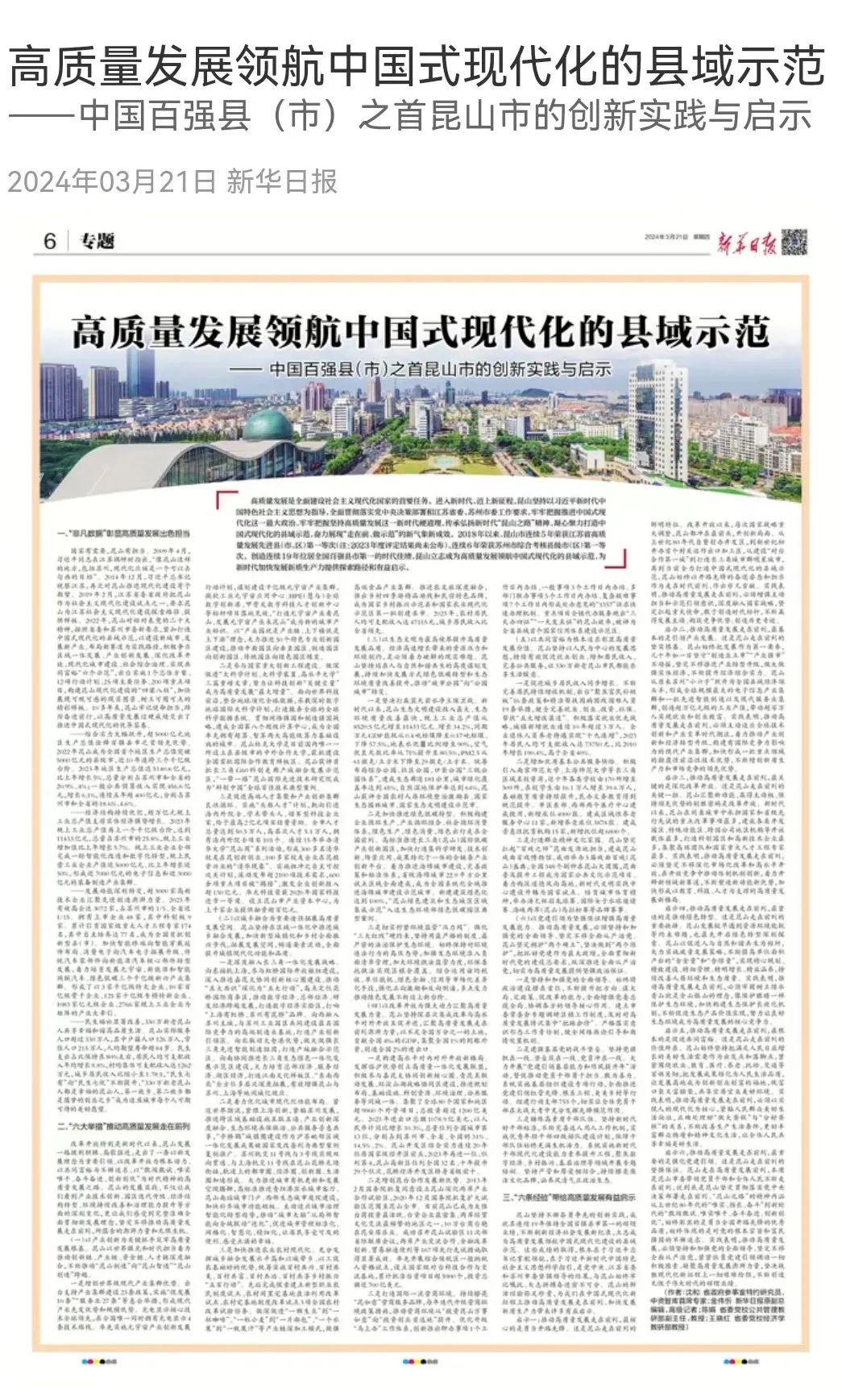 《新華日報(bào)》整版聚焦昆山:高質(zhì)量發(fā)展領(lǐng)航中國式現(xiàn)代化的縣域示范
