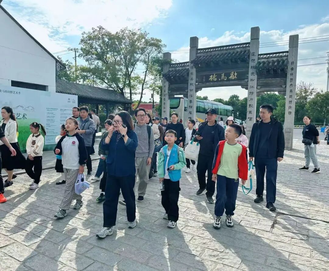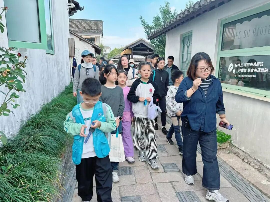 隨后,大家來(lái)到歇馬橋村。呈現(xiàn)在家長(zhǎng)與孩子眼前的,是鱗次櫛比的書店、咖啡館、文創(chuàng)店與茶社,人們喝著咖啡,品著西點(diǎn),耳畔縈繞著昆曲的婉轉(zhuǎn),水面泛起皮艇的漣漪,好一幅閑適畫卷。沿著河邊小道一路前行,大家感受到鄉(xiāng)村的熱鬧與繁華之余,還參觀了新四軍淞滬抗日史跡陳列館和韓世忠紀(jì)念館,了解了很多關(guān)于歇馬橋的過(guò)往。