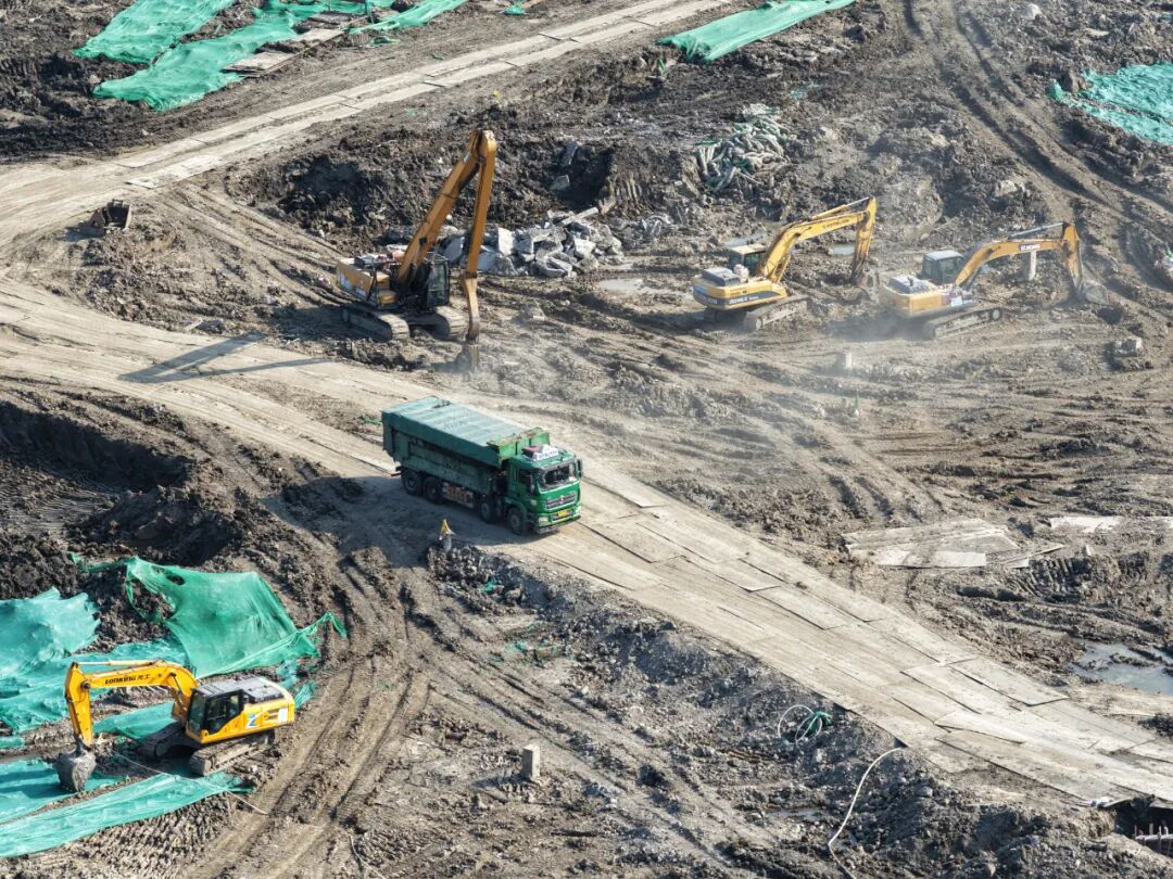 隨著基坑圍護(hù)工程的收尾,一場規(guī)模更大的土石方開挖“大會戰(zhàn)”已全面鋪開。現(xiàn)場,挖掘機(jī)、裝載機(jī)、渣土車等重型機(jī)械轟鳴作響,協(xié)同作業(yè),場面蔚為壯觀,整個流程高效而流暢。據(jù)了解,10月份起,土石方工程已進(jìn)入沖刺階段。
