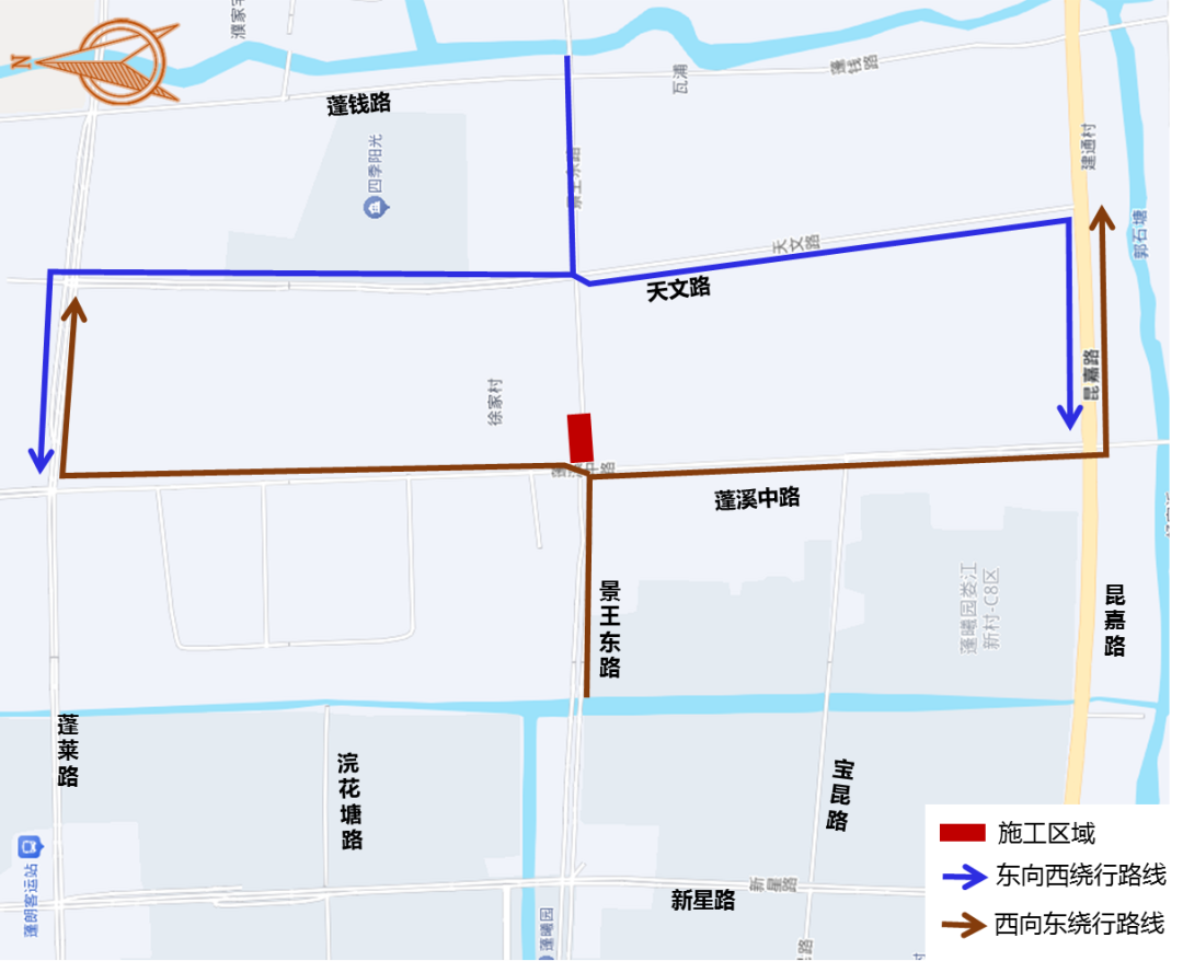 △景王路(蓬溪路~天文路)施工期間繞行路線圖
