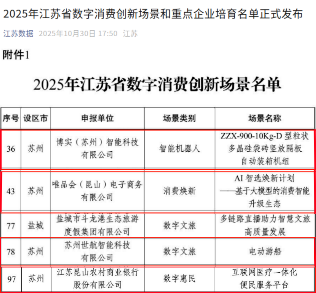 《2025年江蘇省數(shù)字消費(fèi)創(chuàng)新場景和重點企業(yè)培育名單》發(fā)布,昆山4家企業(yè)上榜