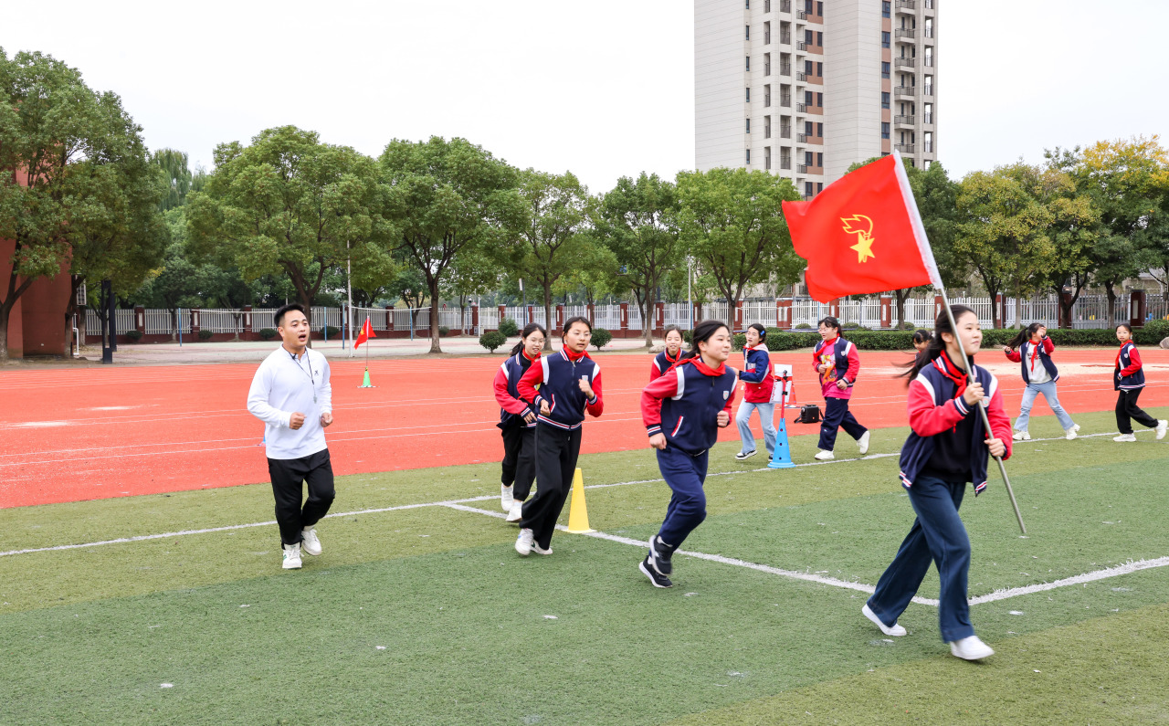 “同學(xué)們,今天我們當(dāng)一次‘小紅軍’,跟著老師突破‘封鎖線’!”課上,徐文杰沒有直接講解動作要領(lǐng),而是以軍旅經(jīng)歷為切入點(diǎn),將熱身跑設(shè)計(jì)成“模擬紅軍行軍”場景。他手持紅旗領(lǐng)跑,學(xué)生們排成縱隊(duì)緊隨其后,踩著“一二一”的節(jié)奏繞場奔跑,操場瞬間變成沉浸式“紅色課堂”。隨后,他一邊示范標(biāo)準(zhǔn)動作,一邊講述長征中紅軍戰(zhàn)士的堅(jiān)韌故事,并組織學(xué)生分組完成“跑過奮斗年”任務(wù)——用慢跑軌跡拼出“1949”“1978”“2021”等關(guān)鍵年份,同時讓學(xué)生分享對應(yīng)年份的歷史意義,將體能訓(xùn)練與思政教育巧妙融合。