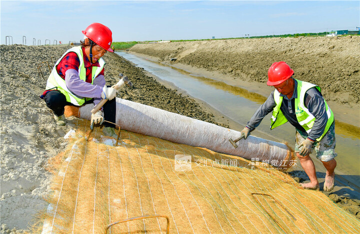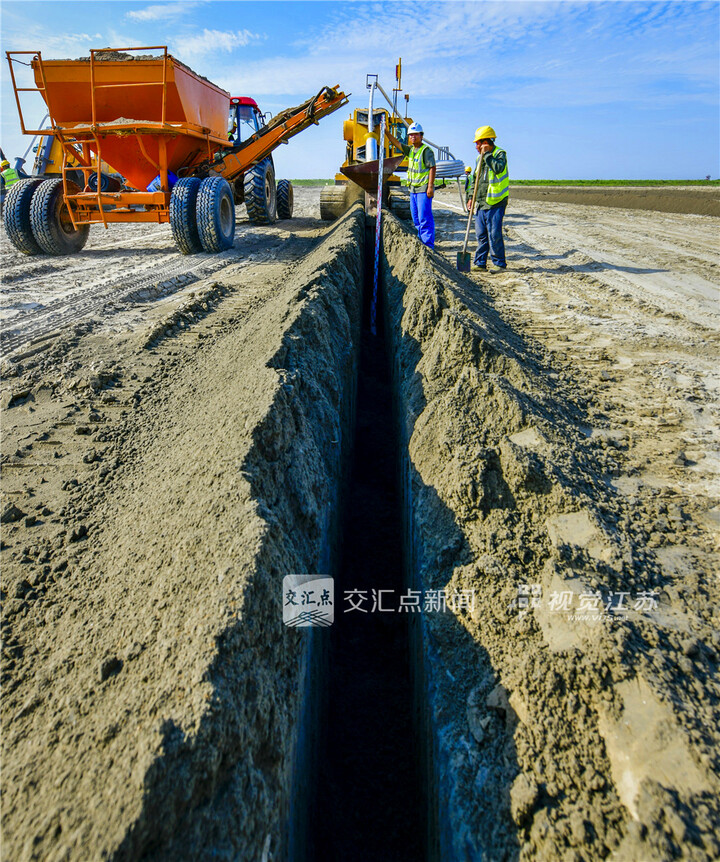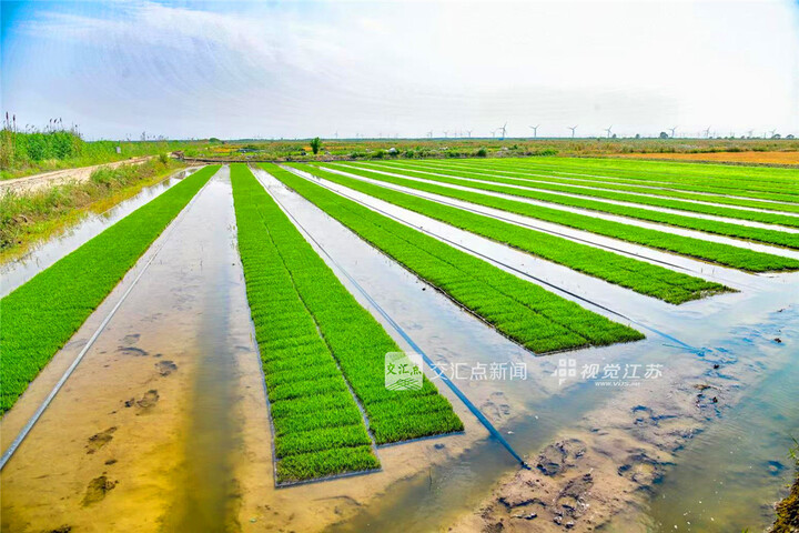 6月5日,記者在現(xiàn)場看到,昔日泛白的鹽堿地已被大片綠油油的稻秧覆蓋,不時(shí)有白鷺從田間飛過?!叭ツ瓿跸柠}堿地改良工程啟動(dòng)時(shí),半數(shù)農(nóng)田里還泛著含鹽量超4‰的‘白色鹽斑’。”江蘇省沿海集團(tuán)東臺(tái)公司種植管理部主管周龍祥感慨地說。而在一塊尚未完成最終改造的地塊上,淡水隨著灌渠緩緩滲透進(jìn)土壤,而經(jīng)過過濾的水流最終順著涵管排出時(shí),上面一層被析出的鹽堿肉眼可見。正是這樣縱橫交錯(cuò)的管網(wǎng)與灌排溝渠相連,構(gòu)建起“灌水洗鹽—明溝排鹽—暗管降漬—循環(huán)凈化”的立體鹽堿治理網(wǎng)絡(luò),讓鹽堿地得以“新生”。